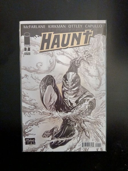 Cover by TODD MCFARLANE. Written by ROBERT KIRKMAN. Art by GREG CAPULLO, RYAN OTTLEY and TODD McFARLANE. McFARLANE and KIRKMAN'S HAUNT HAS ARRIVED! Daniel Kilgore is dragged into his estranged brother Kurt's secret life of murder and espionage... by his ghost. With no training whatsoever, guided by the spirit of his secret-agent brother, Daniel must now solve his brother's murder and save the world - or die trying! It all starts here, people: Witness the birth of HAUNT! 32 pages, full color.