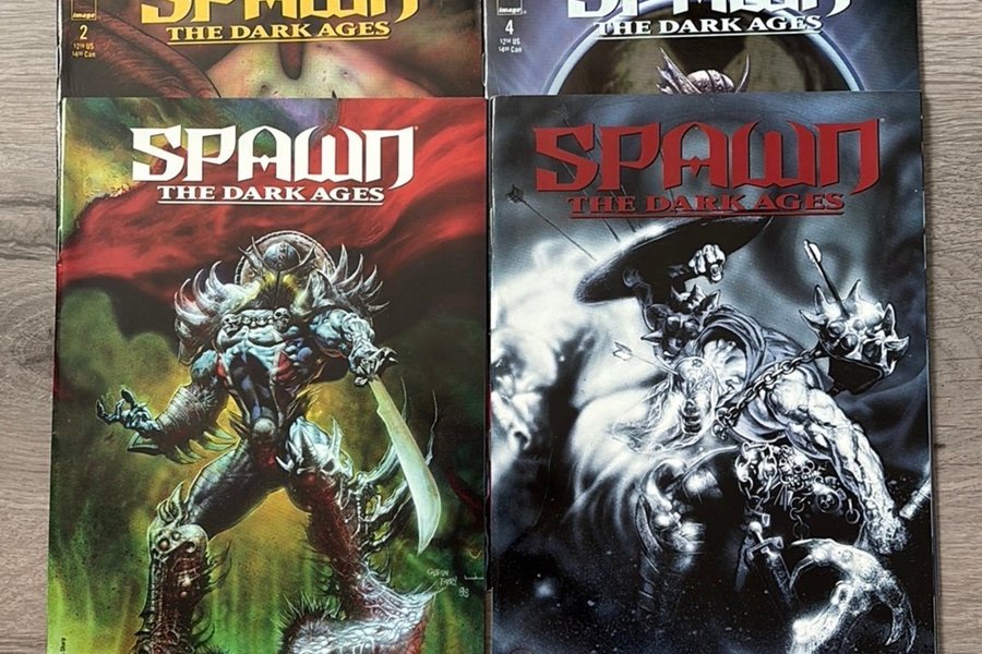 Fyra serietidningar från Spawn The Dark Ages-serien. Innehåller nummer 1, 2, 3 och 4. Numren i fint/mycket fint skick.