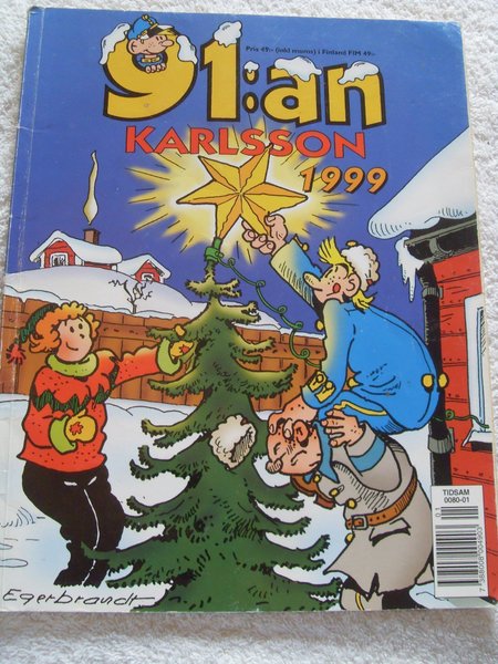 Auktionen: 91:an Karlsson från 1999, är i bra skick, lite skavd upptill på höger sida i ryggen, har legat in pappkartong, är inte läst eller bläddrad i. Inte namnad eller andra textningar finns. Har en hel del prylar ute just nu, så ta gärna en titt på de andra auktionerna jag har ute. Det är total rensning som gäller.