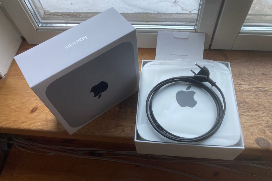 Säljer helt oanvänd Mac Mini (M2, 2023). 8GB RAM & 256GB SSD (Model A2686) + strömkabel, kompatibel med senaste MacOS (Tahoe).. Helt ny i kartong. Endast kollat att serienumret på baksidan stämmer med kartongen. Kvitto finns.