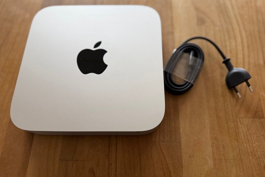 Mac Mini med strömkabel.