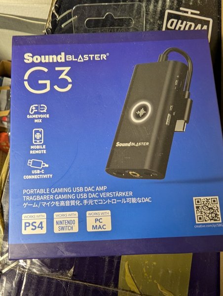Sound Blaster G3 portabel gaming USB DAC förstärkare. Kompatibel med PS4, Nintendo Switch, PC och MAC. Gamevoice mix och mobil fjärrkontroll via USB-C. Oöppnad förpackning