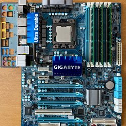 Gigabyte GA-X58A-UD3R moderkort tillsammans med en Intel Xeon X5675, 18gb DDR3, I/O-plåten medföljer. Fullt fungerande.