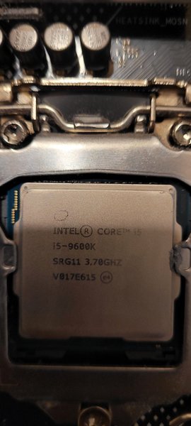 Intel Core i5-9600K processor med en basfrekvens på 3.70GHz. Modellnummer SRG11.