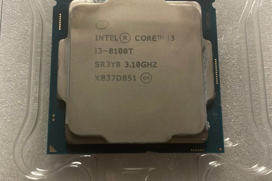 Intel Core i3-8100T processor med en klockfrekvens på 3.10GHz. Modellnummer SR3Y8.