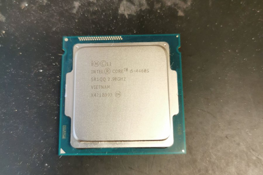 Intel Core i5-4460S processor med en klockfrekvens på 2.90GHz. Modellnummer SR1QQ. Tillverkad i Vietnam.
