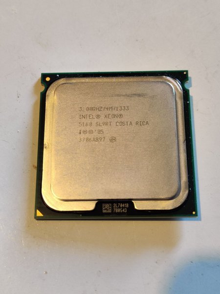 Intel Xeon 5160 SL9RT processor med en klockfrekvens på 3.00GHz, 4MB cache och en bussfrekvens på 1333MHz.