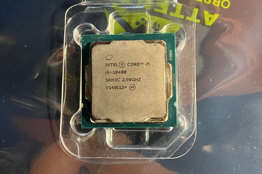 Intel Core i5-10400 processor med en klockfrekvens på 2.90GHz. Modellnummer SRH3C.
