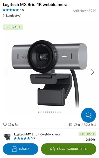 Logitech MX Brio 4K webbkamera.