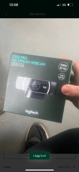 Logitech C922 Pro HD Stream Webcam för Full HD video streaming. Kameran stöder 1080p vid 30 fps och 720p vid 60 fps.