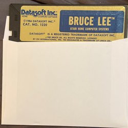 Datasoft Bruce Lee spil til Commodore 64 og Atari. Diskette med spillet fra 1984.