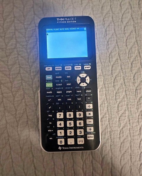 Texas Instruments TI-84 Plus CE-T Python Edition grafräknare. Denna modell är utrustad med Python-funktionalitet. Den har en färgskärm och ett uppladdningsbart batteri. Grafräknaren är lämplig för avancerade matematiska beräkningar och programmering.