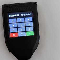 Denna enhet stöder hantering av Bitcoin och andra digitala tillgångar. Den har en skärm för att visa transaktionsdetaljer och navigering.
