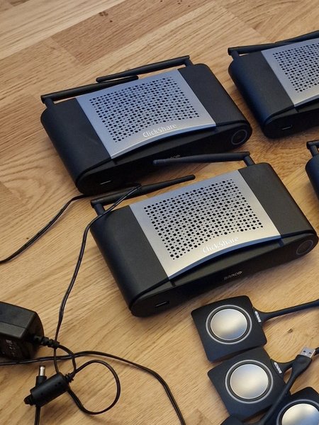 Barco Clickshare enhet för presentationer och samarbete 1 enhet och 2 knappar. Konferensrumsteknik