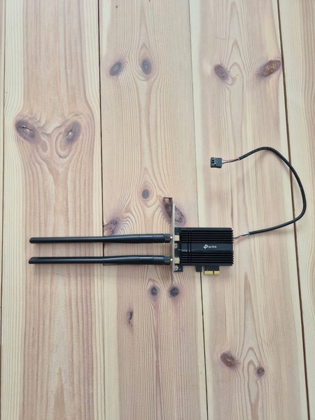 TP-Link Wi-Fi 6 PCIe-adapter. Adaptern har två externa antenner för förbättrad trådlös anslutning.