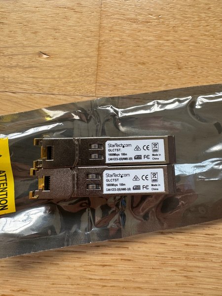 2 stycken StarTech.com GLCTST SFP-modul med en hastighet på 1000Mbps och en räckvidd på 100m. Passar exvis cisco och UniFi