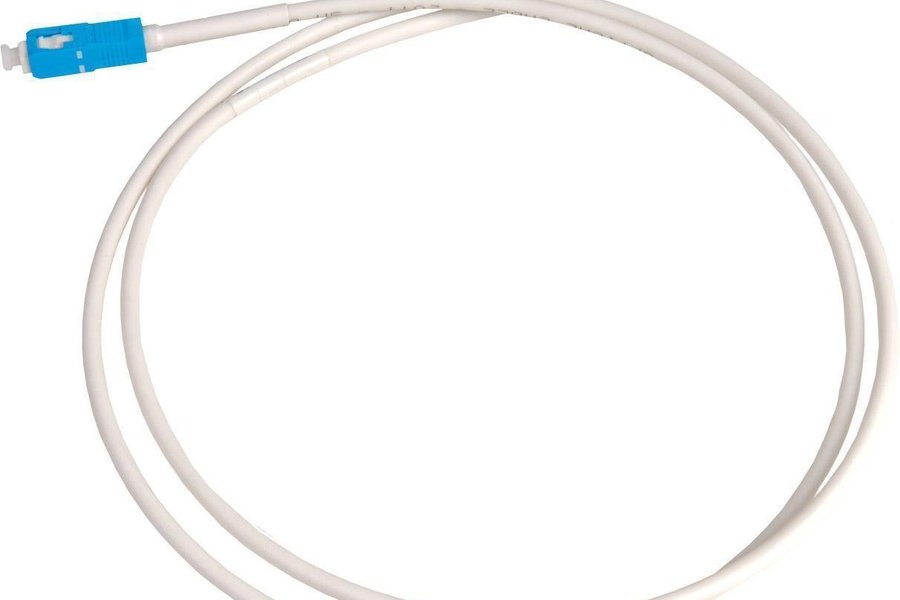 Anslutningskablage för villa, vit. Används endast hemma hos kund mellan fiberuttag och aktiv utrustning. Halogenfri vit mantel, diameter 4mm och böjokänslig fiber (G657B).