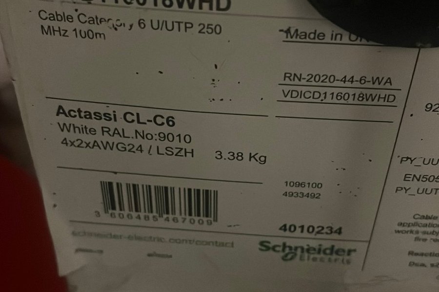 Actassi CL-C6 nätverkskabel, vit RAL.No:9010.