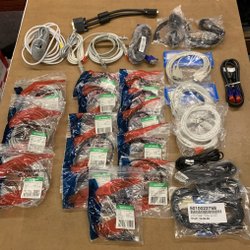 Ett antal nätverkskablar av varierande längd och modell. Kablarna är vita.