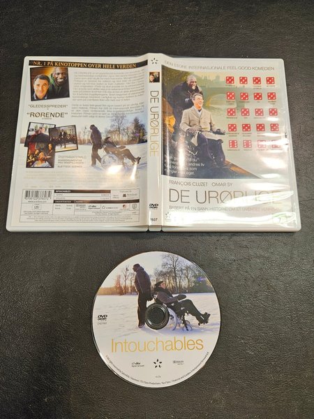 De Urørlige på DVD. En feel-good komedi om vänskap baserad på en sann historia. Med François Cluzet och Omar Sy. Norskt konvolut