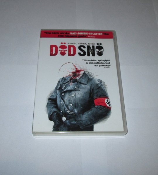 Död Snö på DVD. Filmen är en norsk nazi-zombie-splatterfilm. Texten på omslaget beskriver den som "Ultrasplatter, sprängfylld av skräckeffekter, blod och galenskap".