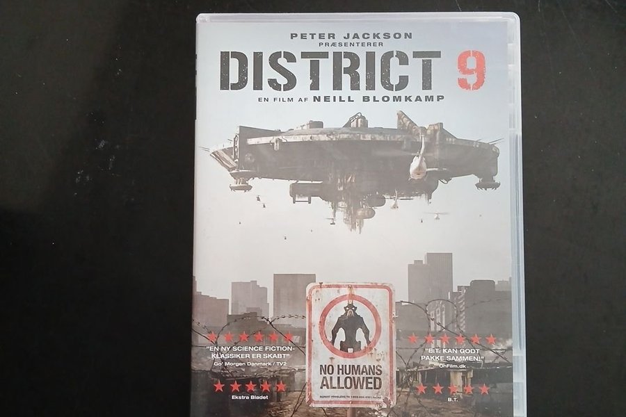 District 9 på DVD, præsenteret af Peter Jackson og instrueret af Neill Blomkamp. Filmen er en science fiction-klassiker.