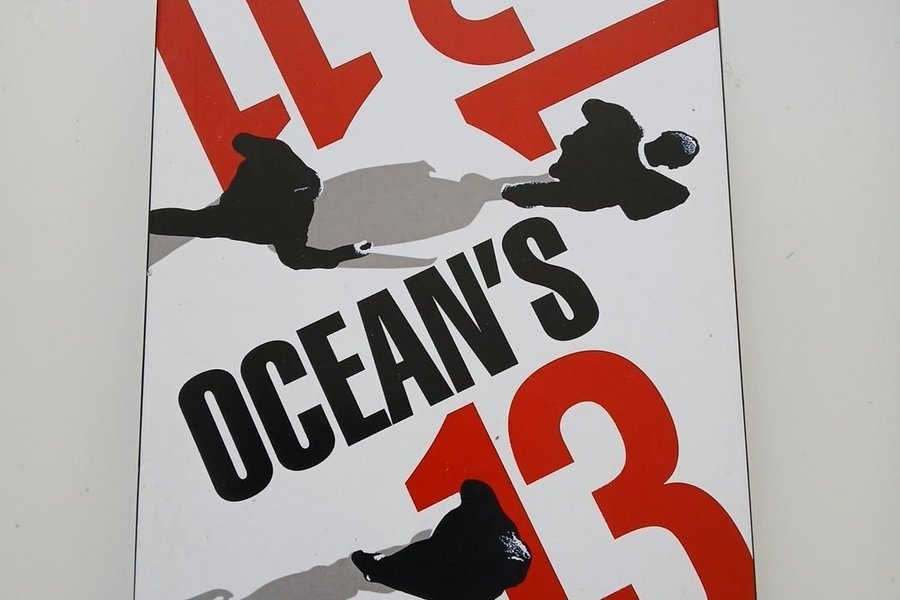Ocean's Thirteen på DVD. Filmen är från 2007 och är den tredje filmen i Ocean's-serien. Medverkar gör bland andra George Clooney, Brad Pitt och Matt Damon.