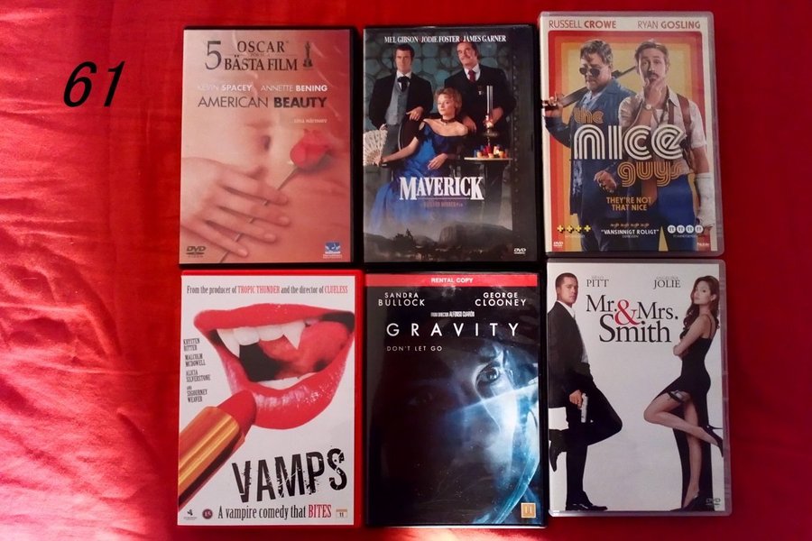 american beauty..maverick..the nice guys..vamps..gravity..mr&mrs smith