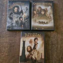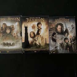 Komplett trilogi av Sagan om Ringen på DVD. Inkluderar: Sagan om Ringen, Sagan om de Två Tornen, och Sagan om Konungens Återkomst.