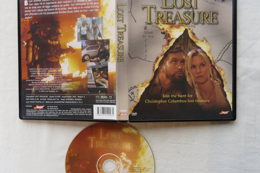 DVD-film "Lost Treasure" med Stephen Baldwin och Nicolette Sheridan. Originaltitel: Lost Treasure. Speltid: 90 minuter. Inspelningsår: 2002. Region: 2. Rekommenderas från 15 år. Språk: Engelska. Textning: Svenska, Norska. Ljud: Dolby Digital 2.0. Bildformat: Anamorfisk Widescreen (1.78:1). Utgiven av Jbox.