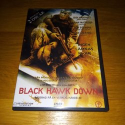 Black Hawk Down på DVD. En amerikansk elitsoldatgrupp hamnar i strid i Mogadishu, Somalia under oktober 1993. Extra material ingår: Featurette och Filmografier.