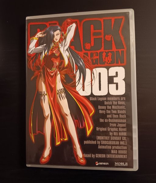Black Lagoon medlemmar är Dutch the Boss, Benny the Mechanic, Revy the Two Hands och Rock från Japan. Original Graphic Novel av Rei Hiroe. Animation production Mad House.