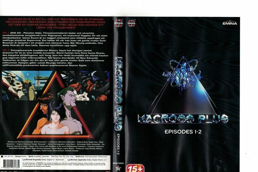 Macross Plus Epis. 1 +2 DVD , Eng, Tal , Svensk Text , i God Kvalité.