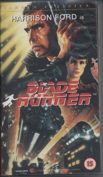 VHS-utgåva av filmen "Blade Runner" med Harrison Ford i huvudrollen. Utgiven av Warner Bros.
