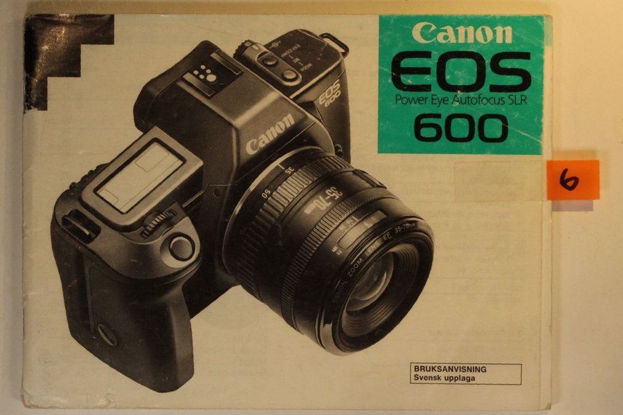 Svensk manual för kamera Canon EOS 1000F (7) i ok skick, komplett och fullt läsbar.