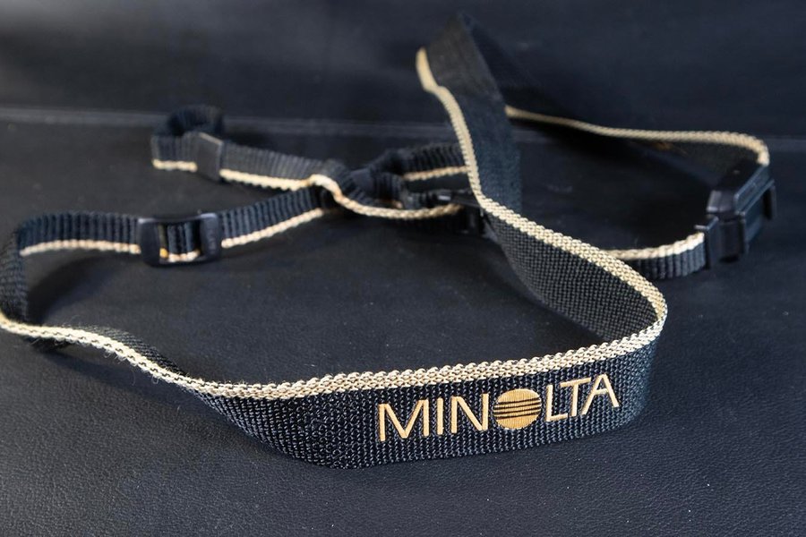 Kamerarem från Minolta, bra skick. Fler fotoprylar i mina andra auktioner. Samfraktar givetvis.