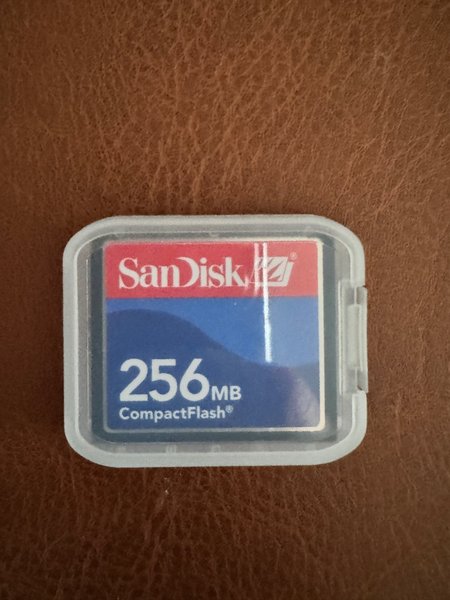 SanDisk CompactFlash minneskort med 256MB lagringskapacitet. Bra till samlingen och till äldre kameror! Fungerar utan problem.