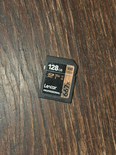 Lexar Professional SD-kort med en lagringskapacitet på 128 GB. Läshastighet 100MB/s.