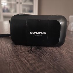 Säljer en otestad Olympus µ[mju:]-1 med bruksanvisning. Väldigt fint skick men som sagt inte testad med film, men den startar och displayen fungerar.