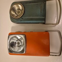 Kamera Olympus Trip 35 med tillhörande blixt Toshiba 216.