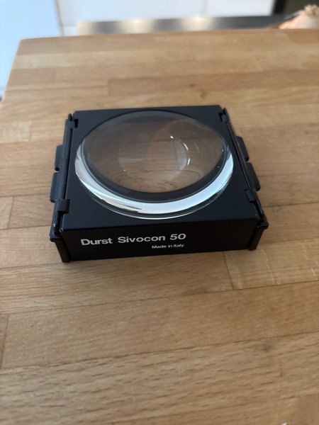 Durst Sivocon 50, tillverkad i Italien. Objektivet är monterat i en svart ram.