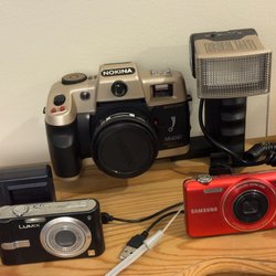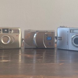 Här är en samling av kameror. Olympus kameran fungerar o har ett minneskort som följer med. Dom andra ej funktionstestade
