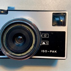 En klassisk Agfa ISO-PAK kamera. Denna kamera kommer med sitt originalfodral och rem. Perfekt för samlaren eller den som vill uppleva analog fotografering. En bit av remmen saknas Objektivringen är lös, I övrigt vet jag inget om funktionen.