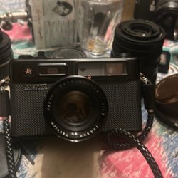 Elioflex kamera med Galileo "Mono" lins. Kameran har inställningar för bländare och slutartider. Den har en tvillinglinsdesign.