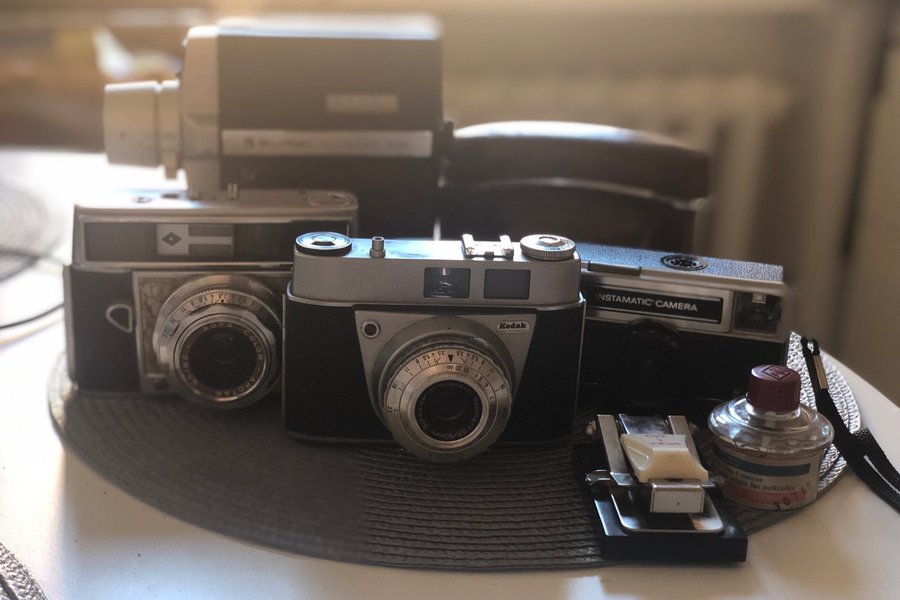 Ett gäng kameror i blandat skick. Slutaren fungerar bra på ett par men allt säljs som defekt/reservdelar/samlarobjekt.