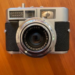 Kamera med Altissar Periskop 1:8-objektiv. Kameran har inställningar för 8, 16 och 25 samt B.