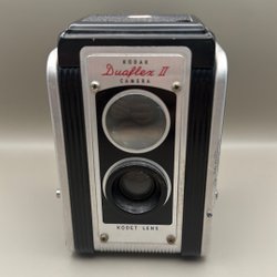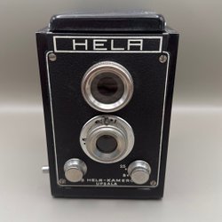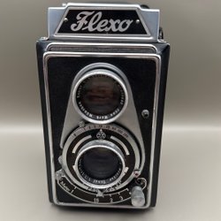 Minolta systemkamera med ett objektiv. Kameran har en svart läderimitation på kroppen och silverfärgade metalldetaljer. Objektivet är ett Minolta Rokkor-PF 1:1.7 f=55mm. Kameran har en ASA/DIN-inställningsratt på baksidan. En ”PASSED”-dekal från J.G.I.I. och J.M.D.C. sitter på ovansidan. Fodralet har lite repor. EJ FUNKTIONSTESTAD