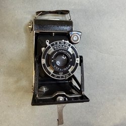 Pentax systemkamera med ett Pentax 35-80mm objektiv. Kameran har en inbyggd blixt och olika fotograferingslägen.