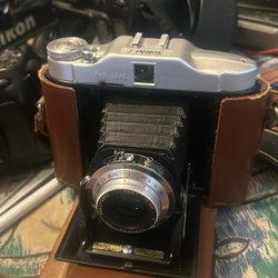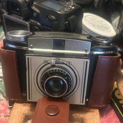 Kamera för den som uppskattar analog fotografering. Kameran är svart. 3 stycken kamera Praktica cosina chinon säljer som reservdelar