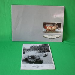 Liten bildkikare i kartong. Negativ på remsa läggs in i spåret och sen tittar man i kikaren från 50-talet.